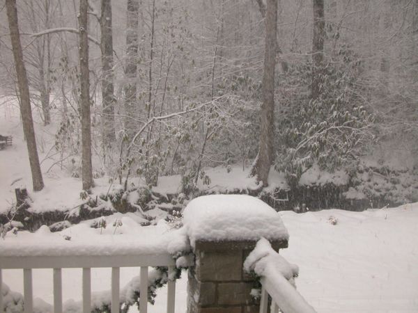 We are getting some snow, of course we are! We had planned our Christmas Open House for my choir tomorrow, so I knew it would snow! If you remember we tried to have a BBQ all fall and it kept raining. However, we are enjoying this one! I'm just making the "party food" for us to enjoy, and the kids have already built a snow man. Thought I would share...