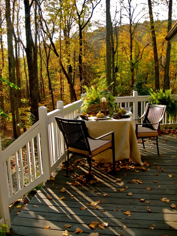 We are outside on the porch this beautiful fall day, and the table is set for two.