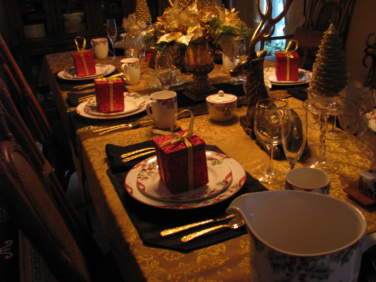 The berries went nicely with the dishes. I love the little "dancing" reindeer:)