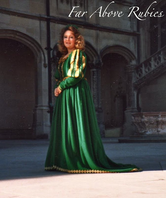 As a college student, I was involved in Early Music Ensemble, which every year presented a series of Madrigal Dinners in early December at our university. This group also performed each year at Biltmore House in costume to celebrate the Christmas season. We were actually featured on NBC's Today Show one Christmas morning singing there at the house. But singing wasn't all I was doing. I designed and made costumes for the group totaling more than 40 by completion of my college career. I remember so fondly being home during Thanksgiving finishing everything up for the performances. My mom, who had a clothing design business, and my grandmother always helped me get everything done and we spent many late nights sewing together. How I miss those days:-) Sewing is something I love and definitely inherited from my mom and both grandmothers. My great grandmother was also a tailor and I've been sewing and designing since I was 9.