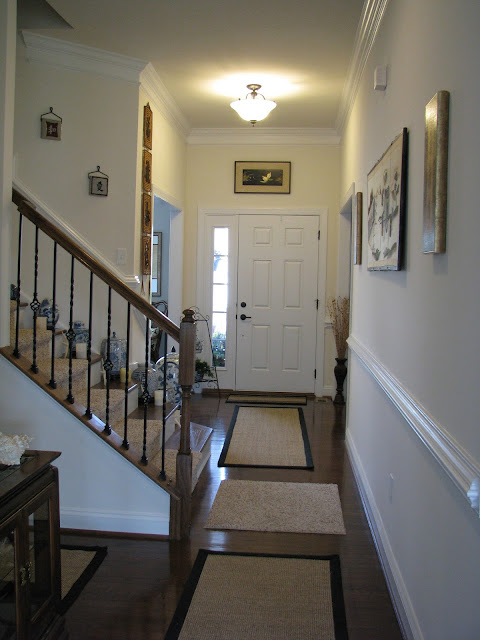 I thought I would show you the steps from the other angle, looking back towards the front door. I never have shown them from here. That is the dining room that you see beyond the stairs.